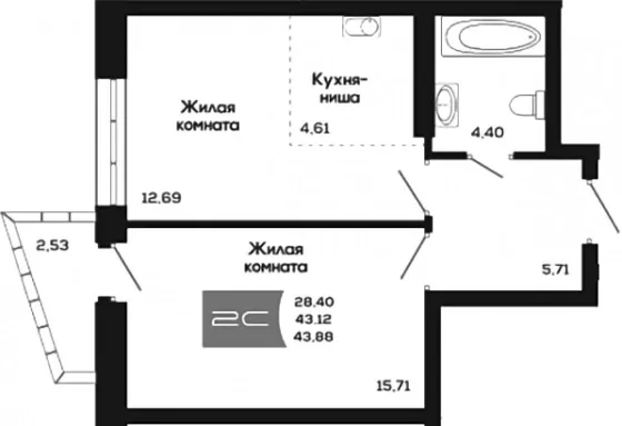 | Площадь, кв.м. | 43.88 |