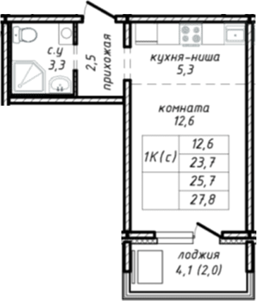 | Площадь, кв.м. | 25.7 |